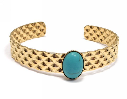 Γυναικείο Βραχιόλι με Κεντρική Πέτρα Τουρκουάζ και Χρυσό Μεταλλικό Σχεδιασμό | 2412-263X