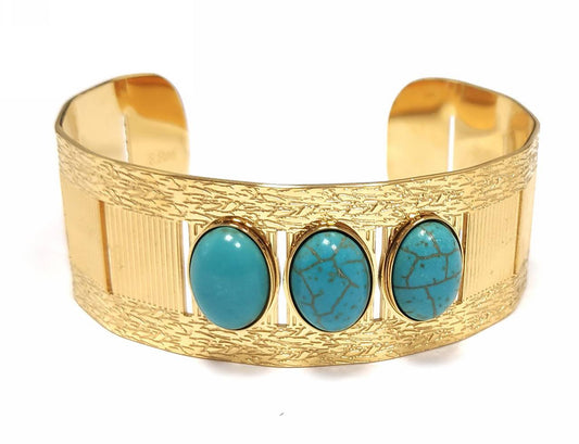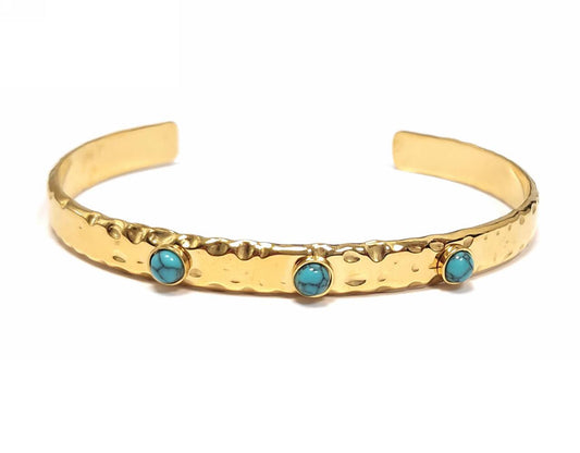 Γυναικείο Βραχιόλι Ανοιχτού Τύπου με Χρυσή Όψη και Γαλάζιες Πέτρες Τουρκουάζ | 2412-265X