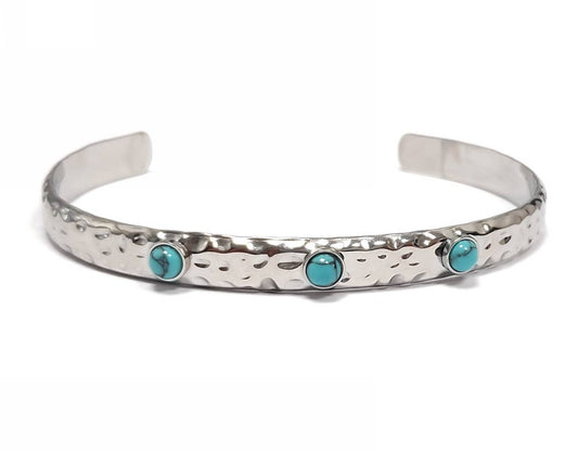 Κομψό Ασημένιο Γυναικείο Βραχιόλι με Τυρκουάζ Πετράδια και Διακοσμητικές Κοιλότητες | 2412-265A