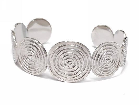 Κομψό Μεταλλικό Βραχιόλι με Σπειροειδή Κύκλους σε Ασημένια Απόχρωση | 2412-217A