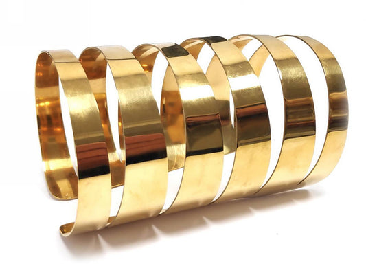Χρυσαφί Μοντέρνο Βραχιόλι με Σπειροειδή Μεταλλικές Λωρίδες και Γυαλιστερή Επιφάνεια | 2412-221X