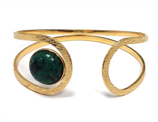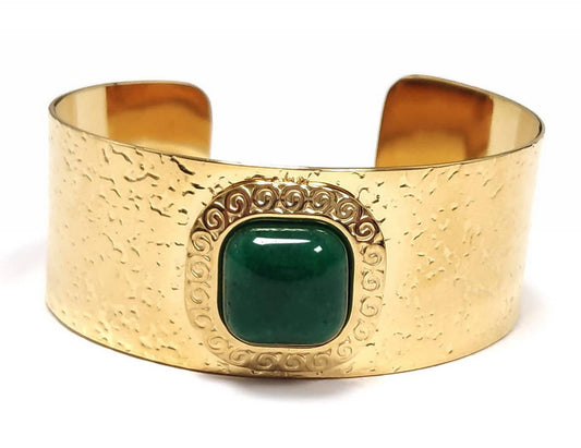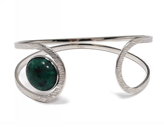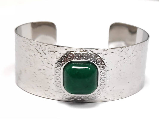 Μεταλλικό Βραχιόλι με Ανάγλυφη Επιφάνεια και Πράσινη Πολύτιμη Πέτρα | 2412-236A