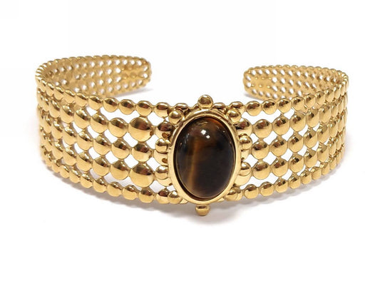 Χρυσό Γυναικείο Βραχιόλι με Λάμψη και Οβάλ Ημιπολύτιμο Λίθο | 2412-237X