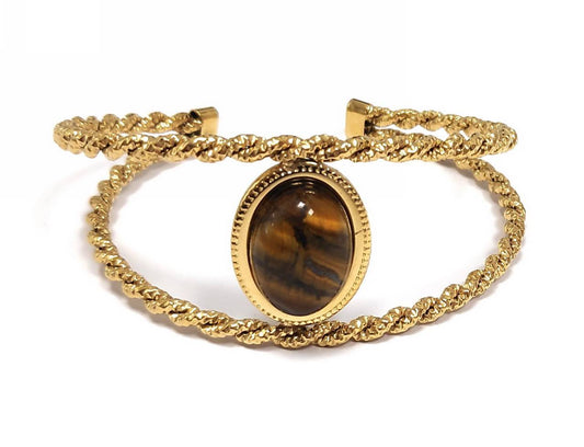 Κομψό Γυναικείο Βραχιόλι με Οβάλ Κεντρική Πέτρα και Στριφογυριστό Σχέδιο | 2412-238X