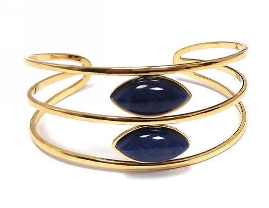 Κομψό Χρυσό Βραχιόλι Σπείρα με Μεγάλους Σταγονοειδείς Λίθους σε Βαθύ Μπλε Χρώμα | 2412-231X