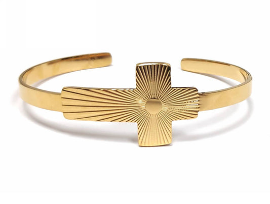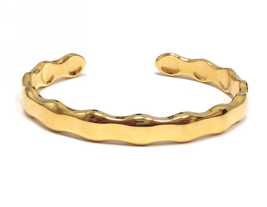 Χρυσαφένιο Βραχιόλι Ανοιχτού Τύπου με Κυματοειδές Σχέδιο & Ανάγλυφες Λεπτομέρειες | 2412-203X