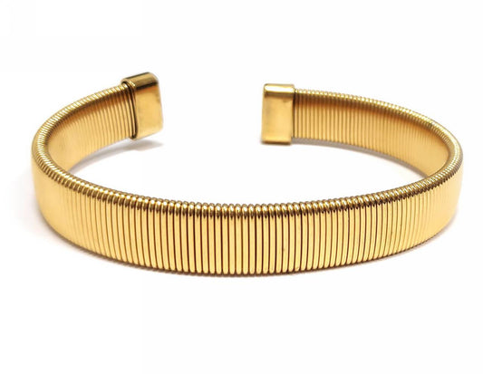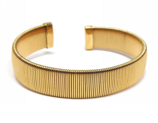 Κομψό Χρυσό Βραχιόλι με Ελαστική Δομή και Λεπτές Οριζόντιες Γραμμές | 2412-204X
