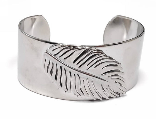 Γυναικείο Ασημένιο Βραχιόλι με Διακοσμητικό Φτερό - Ευρύχωρο Σχέδιο | 2412-206A