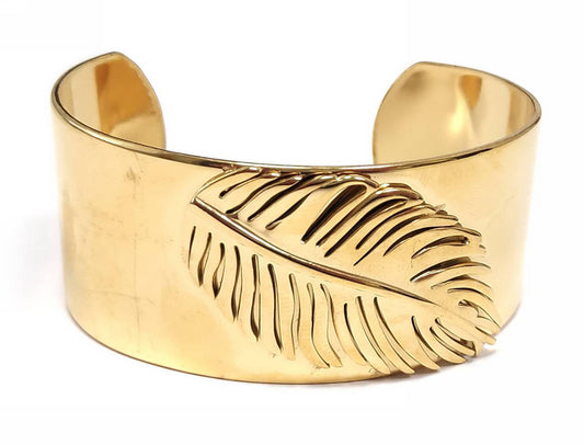 Χρυσαφένιο Βραχιόλι με Ανάγλυφο Μοτίβο Φύλλου Φοίνικα - Κομψός Σχεδιασμός | 2412-206X