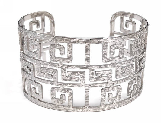 Γυναικείο Μεταλλικό Βραχιόλι Μανσέτα με Γεωμετρικά Μοτίβα σε Ασημί Απόχρωση | 2412-209A