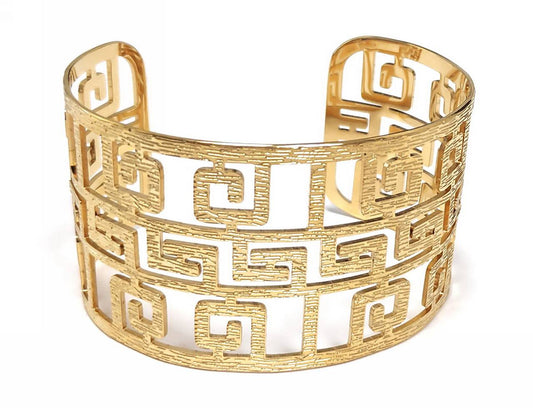 Χρυσό Χρώματος Γυναικείο Βραχιόλι με Ανάγλυφο Γεωμετρικό Μοτίβο Λαβύρινθος - Ανοιχτού Τύπου Διακοσμητικό Σχέδιο | 2412-209X