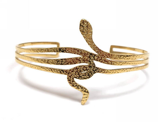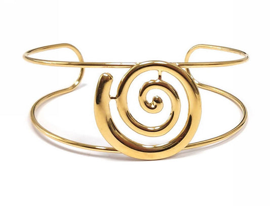 Χειροποίητο Γυναικείο Βραχιόλι Χρυσού Μετάλλου με Σχήμα Ανοιχτής Περικαρδίας και Σπειροειδή Διακόσμηση | 2412-212X