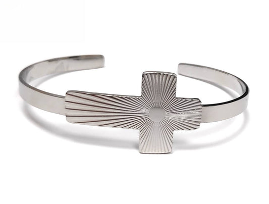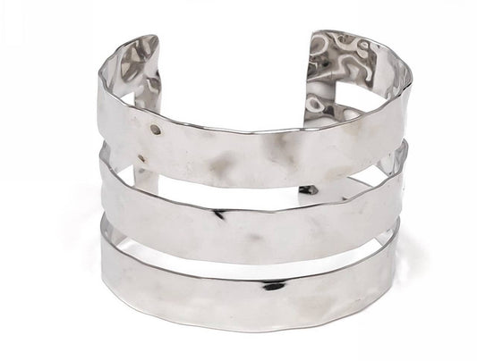Λαμπερό Μεταλλικό Βραχιόλι Με Ανοιχτό Σχέδιο και Φαρδιά Επιφάνεια | 2412-210A