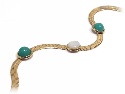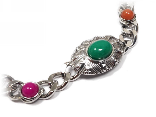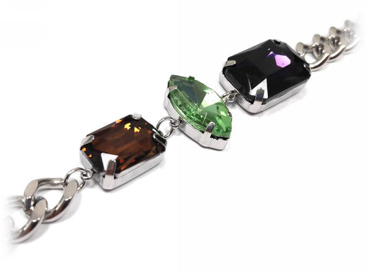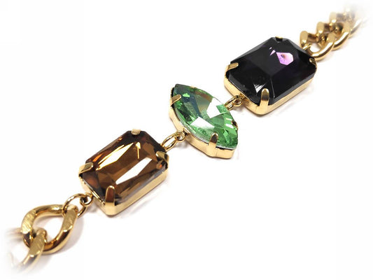 Χρυσό Βραχιόλι με Αλυσίδα και Πολύτιμους Λίθους σε Μοβ, Πράσινο & Καφέ | 2332-008X