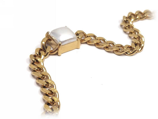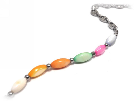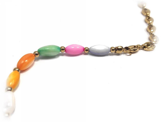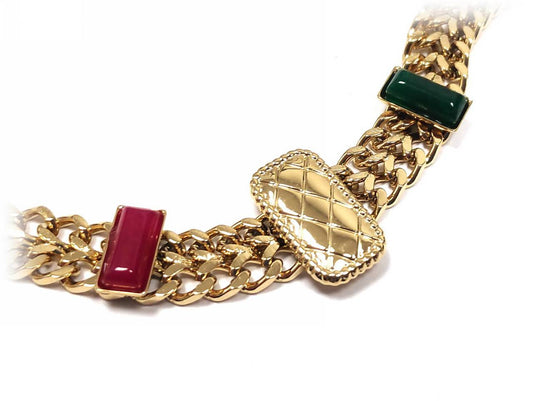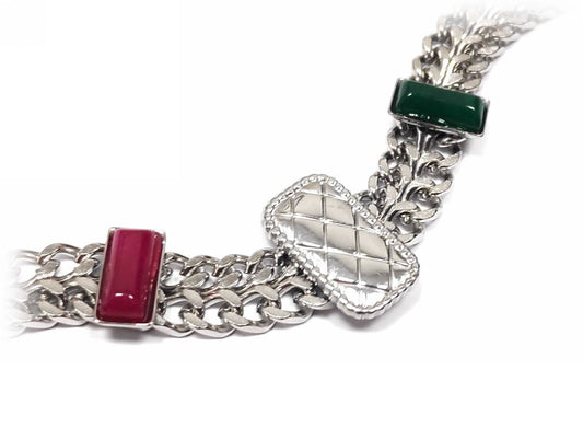 Χρυσό Βραχιόλι Αλυσίδα με Πράσινο, Χρυσαφί και Ροζ Ορθογώνια Στοιχεία | 2332-006X