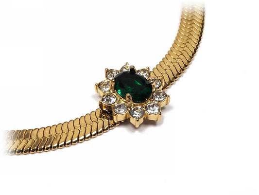 Χρυσό Βραχιόλι με Λουλούδι και Πράσινη Πέτρα | 2332-007X