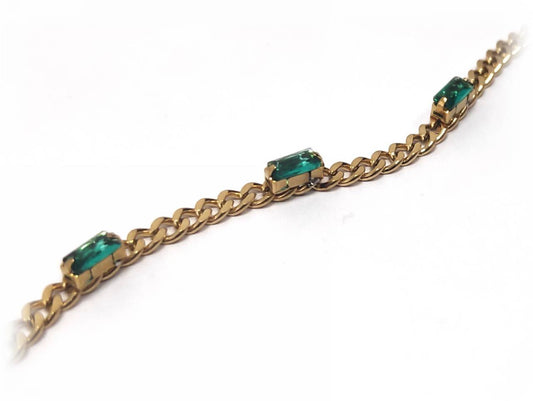 Χρυσό Βραχιόλι με Αλυσίδα και Τρία Ορθογώνια Πράσινα Πετράδια | 2222-054X
