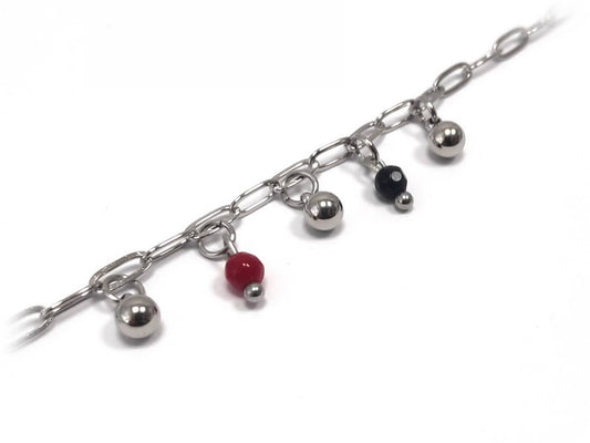 Ασημί Βραχιόλι με Μεγάλους Κρίκους και Χάντρες σε Κόκκινο & Μπλε | 2222-058A