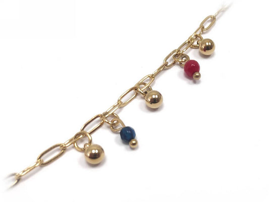 Χρυσό Βραχιόλι με Αλυσίδα, Μπλε & Κόκκινες Χάντρες, Διακοσμητικές Μπάλες & Καρδιά | 2222-058X
