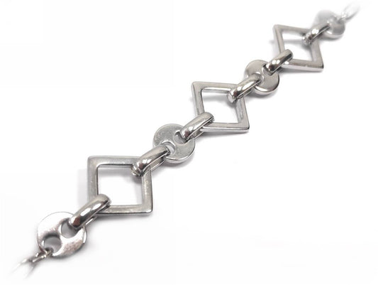 Ασημί Βραχιόλι με Γεωμετρικούς Συνδέσμους και Ρυθμιζόμενο Κλείσιμο | 2222-075A