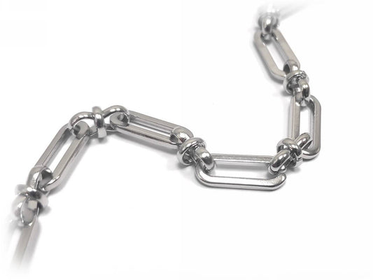 Ασημί Βραχιόλι με Επιμήκεις Κρίκους και Αλυσίδα Επέκτασης | 2222-071A