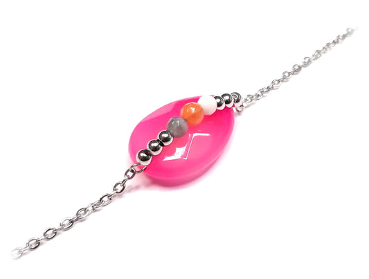 Βραχιόλι Ασημί με Ροζ Διακοσμητικό και Χάντρες Πορτοκαλί-Γκρι | 2312-113A