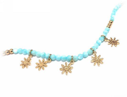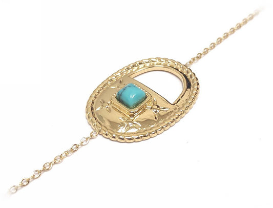 Χρυσό Βραχιόλι με Λεπτή Αλυσίδα και Οβάλ Μενταγιόν με Γαλαζοπράσινο Λίθο | 2312-108X