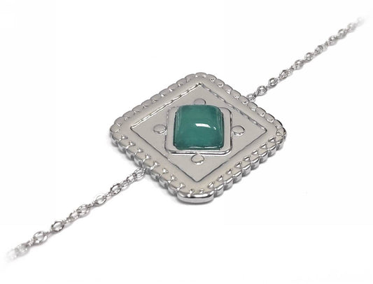 Γυναικείο Βραχιόλι από Ασήμι με Τετράγωνο Μοτίβο και Πράσινο Πολύτιμο Λίθο | 2312-111A