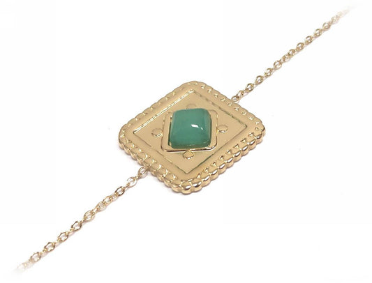 Βραχιόλι Αλυσίδα με Χρυσό Δίσκο και Πράσινο Γεωμετρικό Στοιχείο | 2312-111X