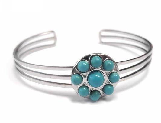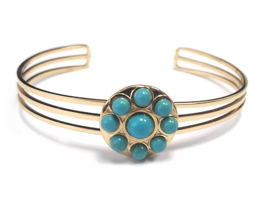 Χρυσή Χειροπέδα Βραχιόλι με Τιρκουάζ Πετράδια και Κυκλικό Μοτίβο | 2312-116X
