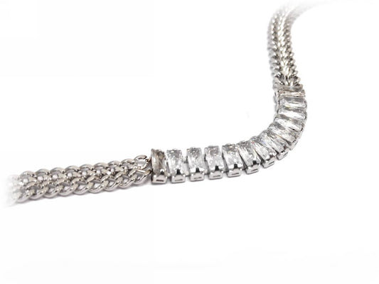 Ασημί Βραχιόλι με Ορθογώνια Κρύσταλλα και Επέκταση Αλυσίδας | 2212-173A