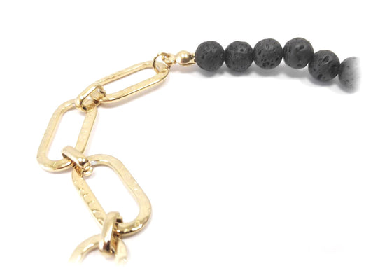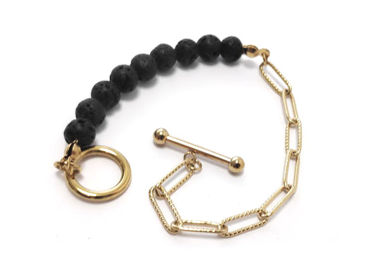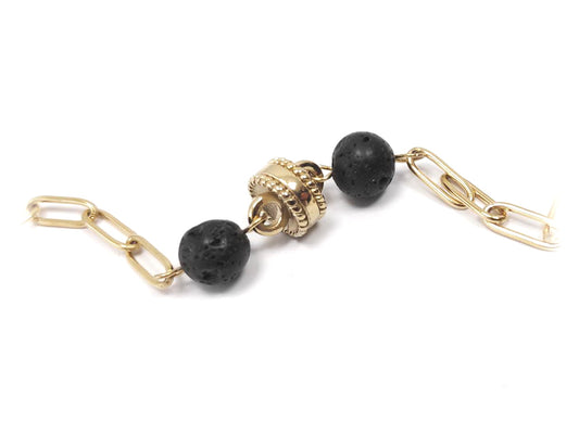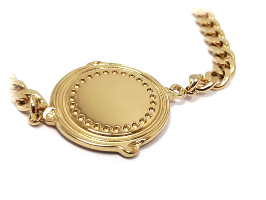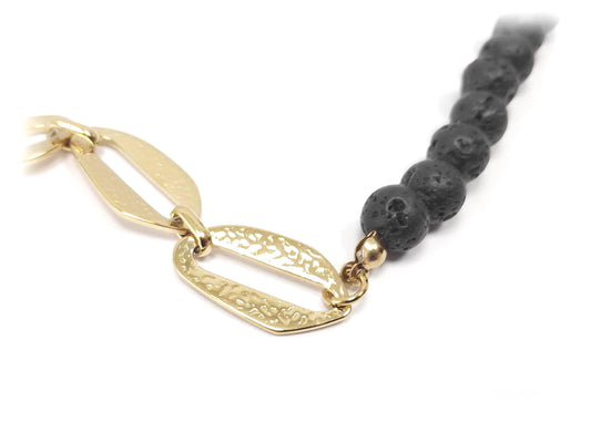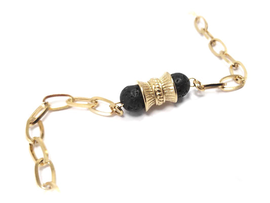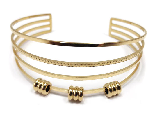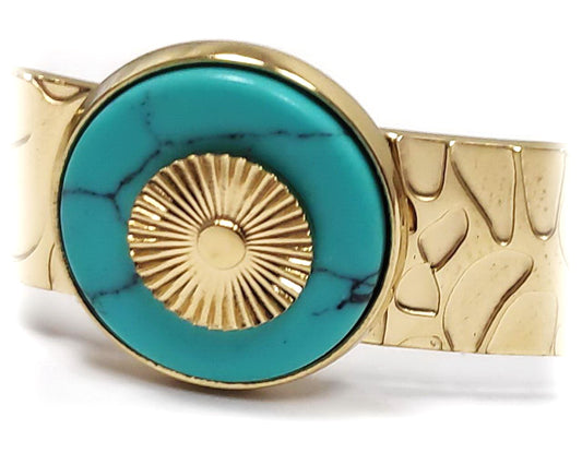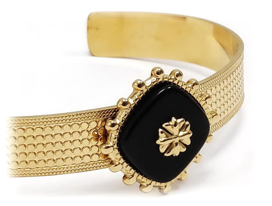 Βραχιόλι Μανσέτα Χρυσόχρωμο με Ανάγλυφο Σχέδιο & Μαύρο Τετράγωνο Διακοσμητικό | 2112-101X