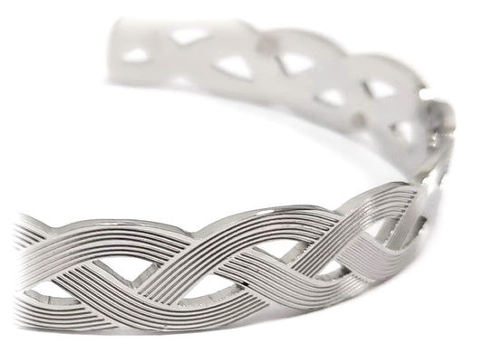 Ασημί Ανοιχτό Βραχιόλι με Πλεξούδα και Γυαλιστερή Επιφάνεια | 2112-119A