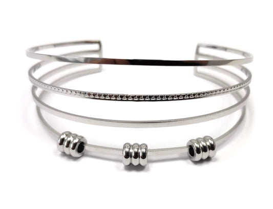 Ασημί Βραχιόλι Μανσέτα με Ανάγλυφη Υφή και Μοντέρνο Σχεδιασμό | 2112-120A