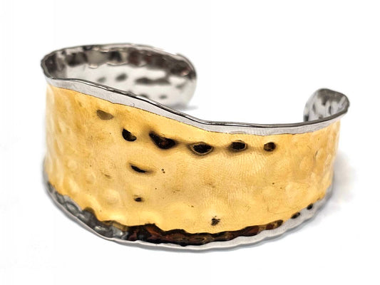 Γυναικείο Φαρδύ Βραχιόλι με Ανοιχτή Σχεδίαση και Σφυρήλατο Φινίρισμα σε Διχρωμία Χρυσού & Ασημί | 2512-211X