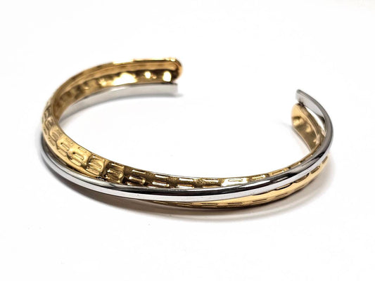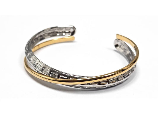Γυναικείο Ανοιχτό Βραχιόλι Δίχρωμο με Ανάγλυφη Διακόσμηση από Ατσάλι | 2512-213X