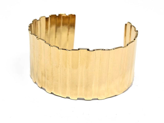 Χρυσό Φαρδύ Βραχιόλι Cuff με Αυλακωτή Σχεδίαση και Γυαλιστερή Επιφάνεια | 2512-218X