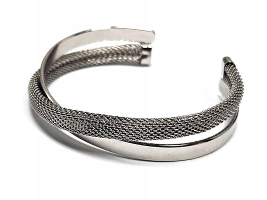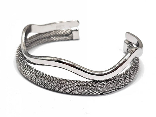 Γυναικείο Ανοιχτό Βραχιόλι από Ατσάλι σε Ασημί Απόχρωση με Πλεκτό Σχέδιο | 2512-219A