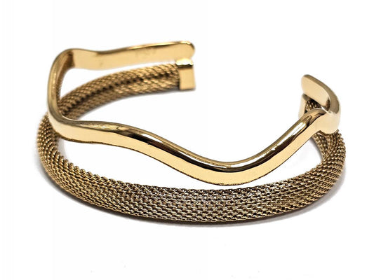 Γυναικείο Χρυσό Βραχιόλι με Κυματιστό Σχέδιο και Πλέξη | 2512-220X