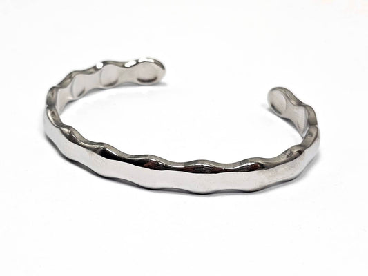 Γυναικείο Ασημένιο Βραχιόλι Μανσέτα με Γυαλιστερή Κυματοειδή Επιφάνεια | 2512-218A