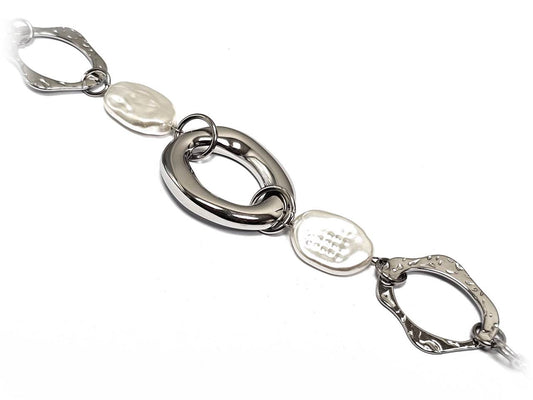 Γυναικείο Βραχιόλι με Μεταλλικούς Κρίκους και Ακανόνιστες Πέρλες | 2512-223A