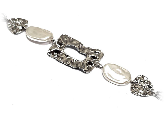 Γυναικείο Βραχιόλι με Μεταλλικές Πλάκες και Μαργαριταρένια Στοιχεία | 2512-224A