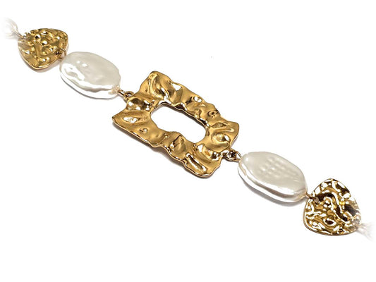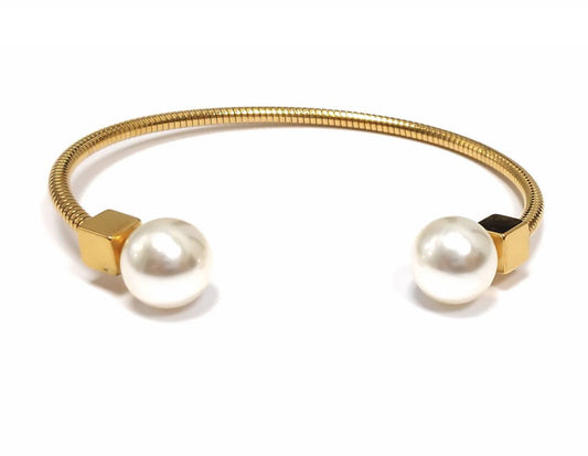 Ρυθμιζόμενο Γυναικείο Βραχιόλι με Επίχρυση Μεταλλική Βάση και Λευκές Περλίνες | 2412-243X