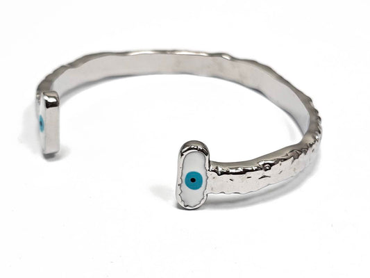 Γυναικείο Ασημένιο Βραχιόλι με Σφυρήλατο Σχέδιο και Διακοσμητικά Μάτια | 2512-225A