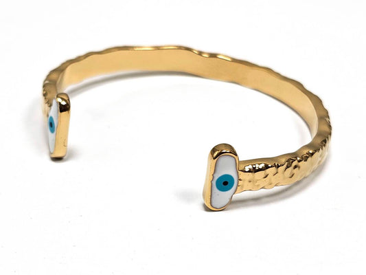 Γυναικείο Χρυσό Βραχιόλι με Σαγρέ Υφή και Μάτι | 2512-225X
