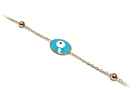 Γυναικείο Χρυσό Βραχιόλι με Αλυσίδα, Χρυσές Μπίλιες & Γαλάζιο Ματάκι Προστασίας | 2512-226X