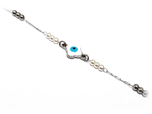 Γυναικείο Βραχιόλι από Ατσάλι με Ματάκι, Ασημένιες Χάντρες & Λευκές Πέρλες | 2512-227A