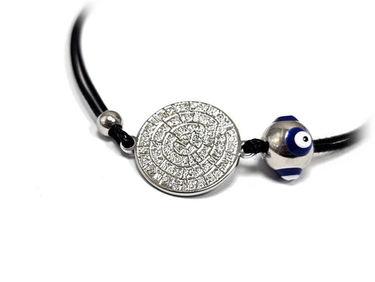 Γυναικείο Βραχιόλι με Μαύρο Κορδόνι, Ασημένιο Δίσκο και Χάντρα Ματάκι | 2512-228A