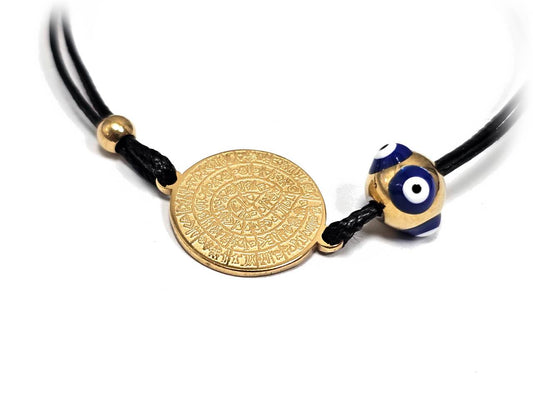 Γυναικείο Βραχιόλι με Μαύρο Κορδόνι, Χρυσές Λεπτομέρειες & Χάντρα Μάτι | 2512-228X