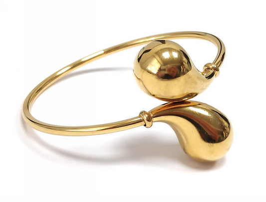 Χρυσό Ανοιχτό Βραχιόλι με Μίνιμαλ Σχεδιασμό και Λαμπερές Σφαίρες | 2412-202X
